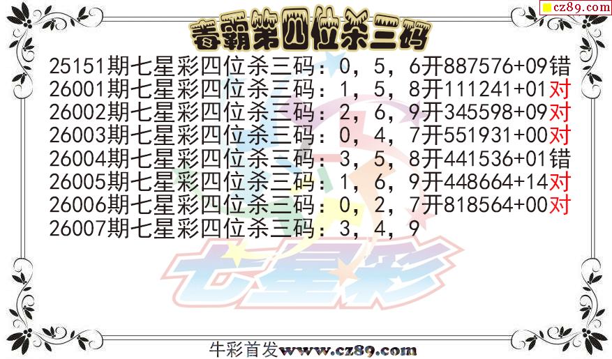 > 七星彩2026007期毒霸第四位杀三码图迷